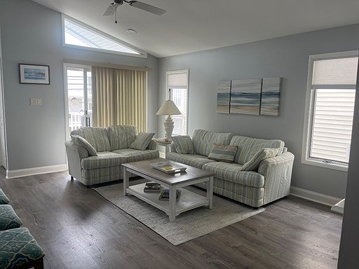 3 Bedroom, 2 Bath on Beach side of Asbury Ave 2nd floor - front porch & large rear deck located walking to beach and boardwalk - park and forget. New recent booking for 2025. This beautiful second floor Asbury Ave condo all on one level is a well maintained property with lots of “beach house” charm.
