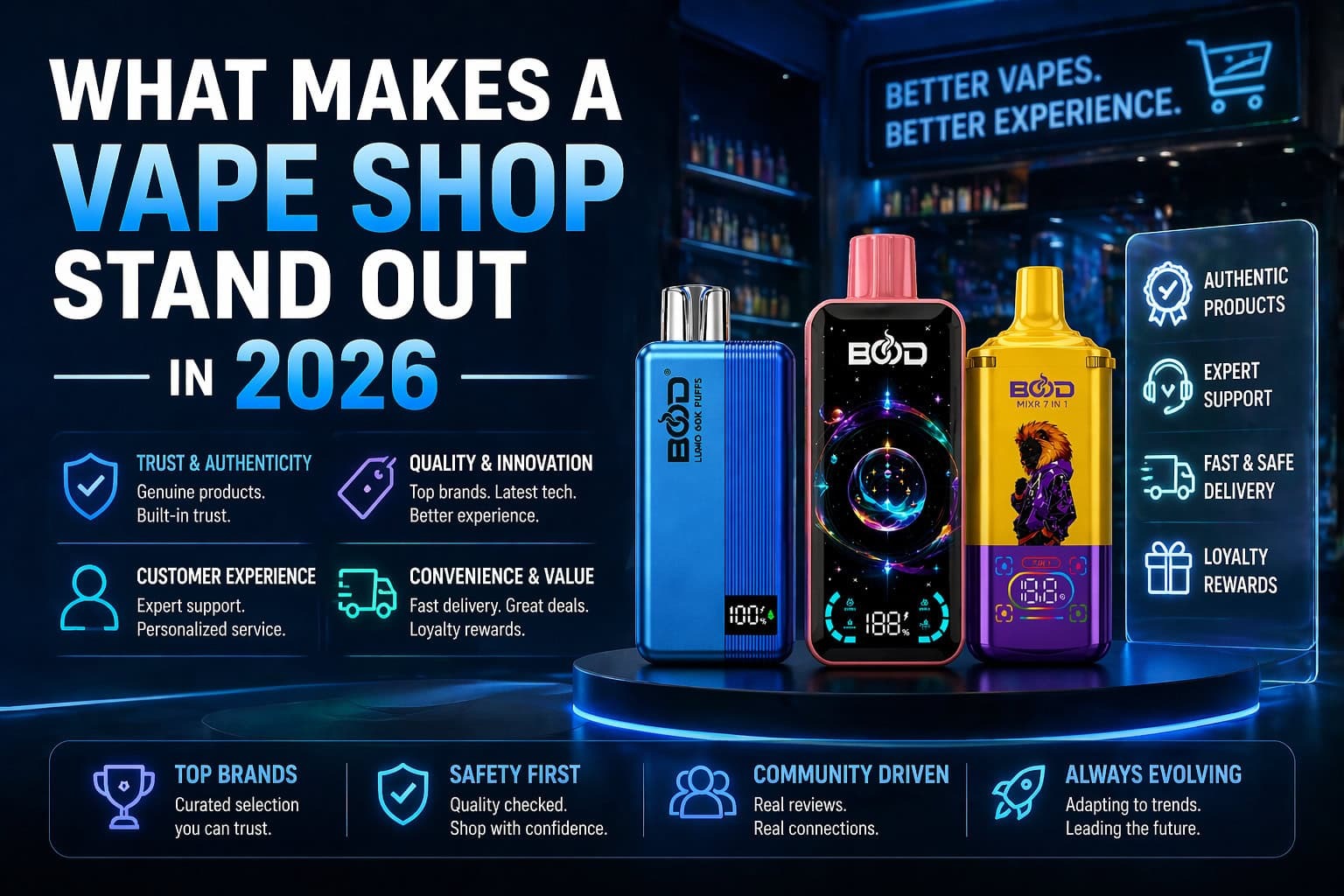 Product transparency and authenticity. Shops that stand out do not just sell products — they verify them. They can tell you where a device came from, which batch it belongs to, and how to verify it is not a counterfeit. This matters more as the counterfeit problem in vaping has grown significantly.