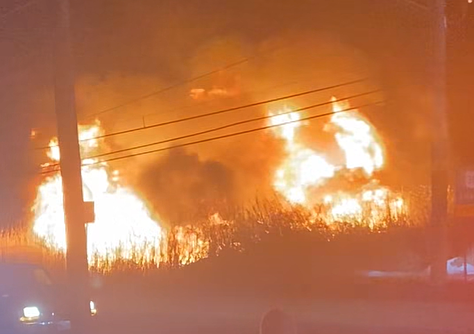 The car fire spread to the marsh due to the high winds, Vanegas said.